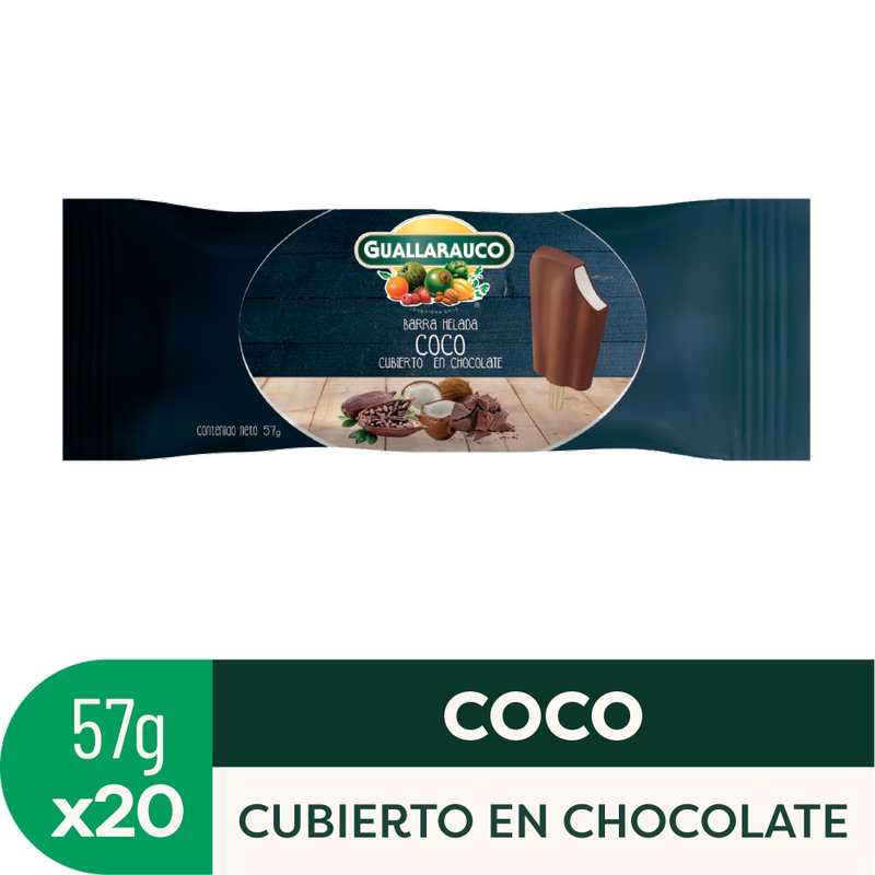 Cremoso helado de coco con cobertura de Chocolate semi amargo. Disfruta de esta exquisita combinación, todo el año!