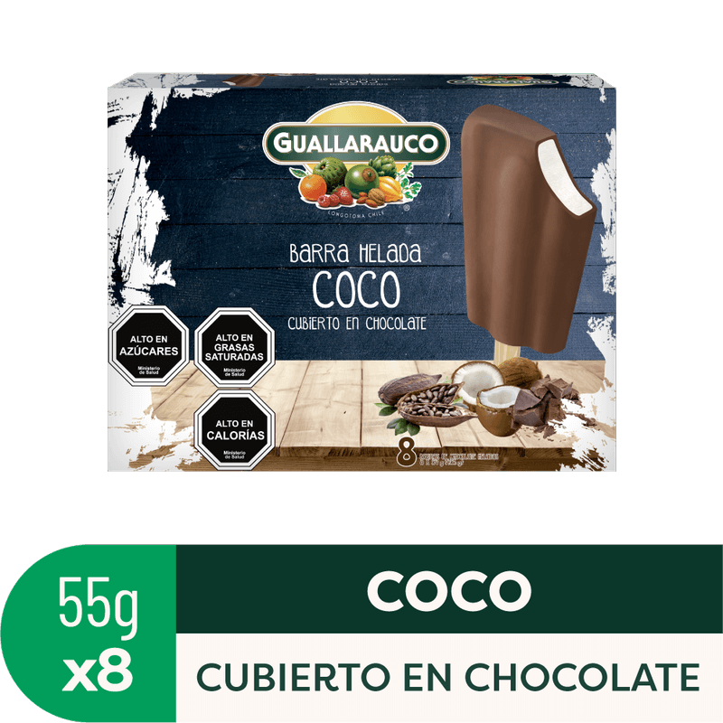 Cremoso helado de coco con cobertura de Chocolate semi amargo. Disfruta de esta exquisita combinación, todo el año!