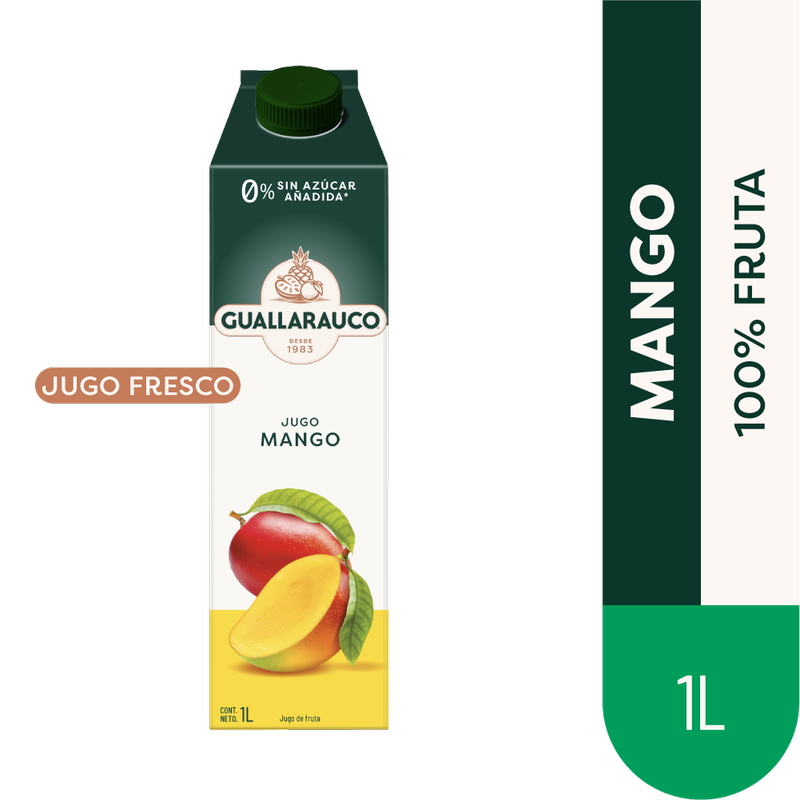 Jugo de Mango, preparado con fruta cuidadosamente seleccionada y cosechada en su punto óptimo de madurez.
