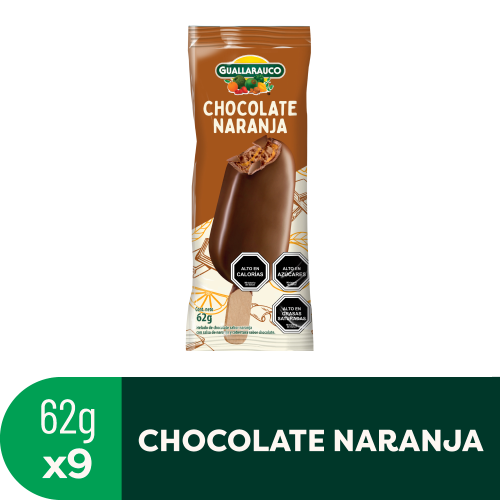 Disfruta de este cremoso helado de chocolate y naranja, con cobertura sabor chocolate.