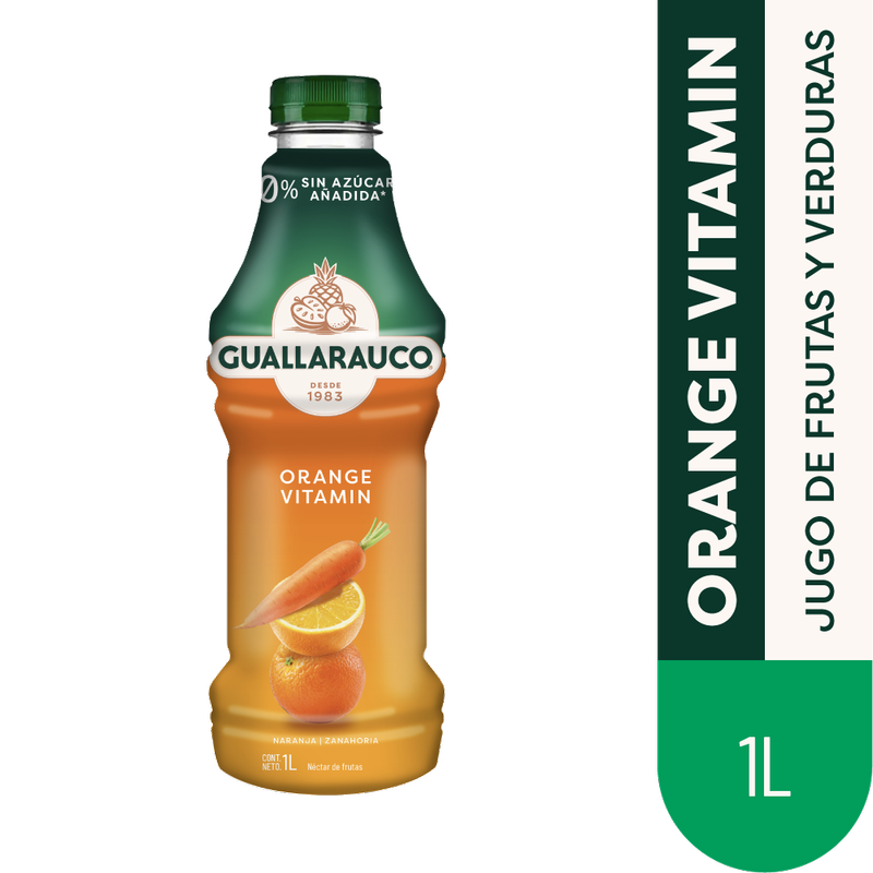 Jugo de frutas y verduras. Exquisita combinación de piña, zanahoria y naranja, 0% sin azúcar añadida.