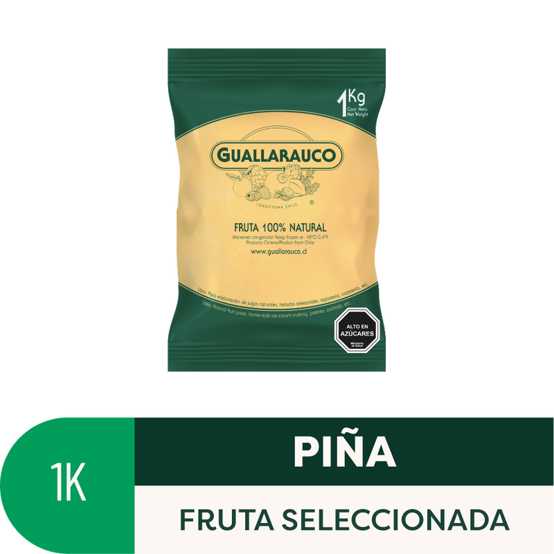 Exquisita fruta cuidadosamente seleccionada, cosechada y congelada en su punto óptimo de madurez. Posibles usos: Jugos, Helados Artesanales, Tortas, Salsas, Postres o Coctelería. La piña es una fruta dulce y exótica, que contiene grandes beneficios. Disfruta su rico dulzor y frescura natural.